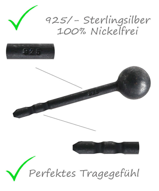 Ohrstecker Kugel Silber schwarz Handarbeit