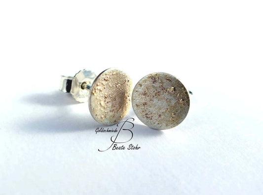 Ohrringe Silber 925, 4/6/8mm, echte Handmade Ohrstecker rund Eis-Matt