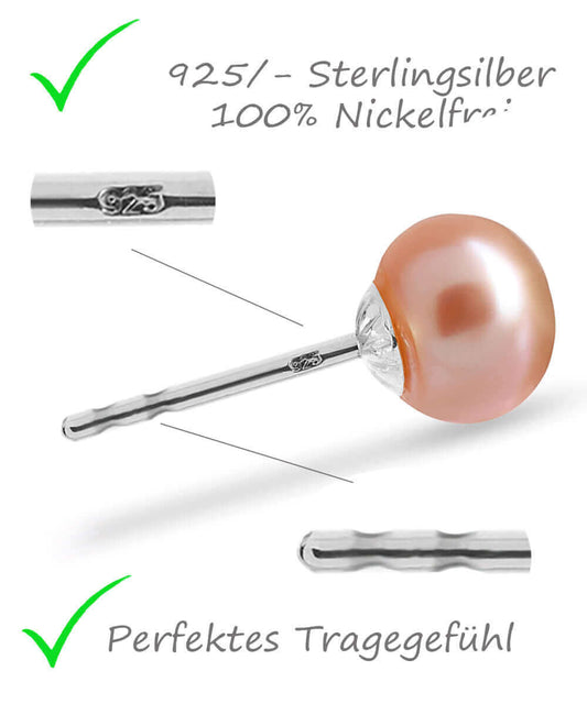 Ohrstecker mit echter rosa Süßwasser Perle 6mm Silber