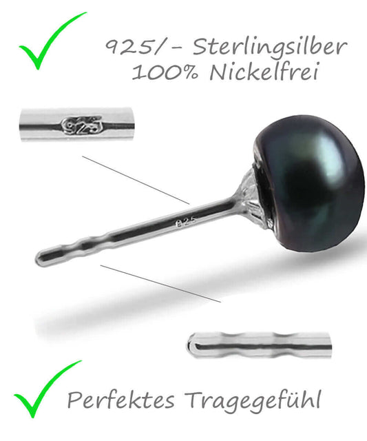 Ohrstecker mit echter schwarzer Süßwasser Perle 6mm Silber