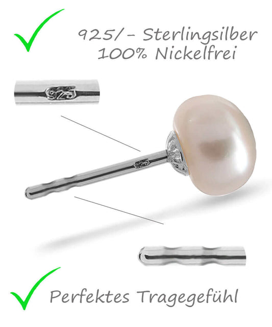 Ohrstecker mit echter weißer Süßwasser Perle 6mm Silber