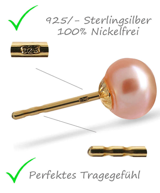 Ohrstecker mit echter rosa Süßwasser Perle 6mm Silber vergoldet