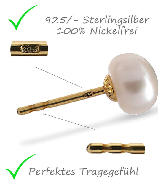 Ohrstecker mit echter weißer Süßwasser Perle 6mm Silber vergoldet